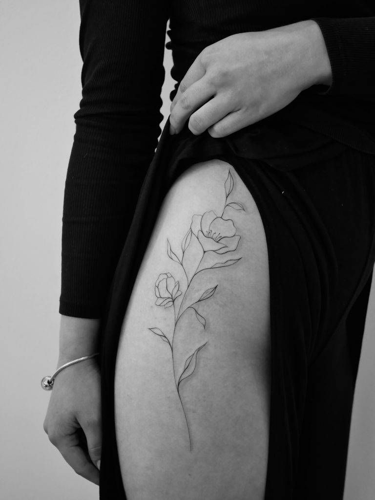 ICH BIN TÄTOWIERERIN AUS HAMBURG UND MIT DEM TÄTOWIEREN SEIT 2021 SELBSTÄNDIG. AKTUELL ARBEITE ICH ZUSAMMEN MIT MEINER KOLLEGIN IN UNSEREM KLEINEN GEMÜTLICHEN STUDIO IN HAMBURG, EIMSBÜTTEL.